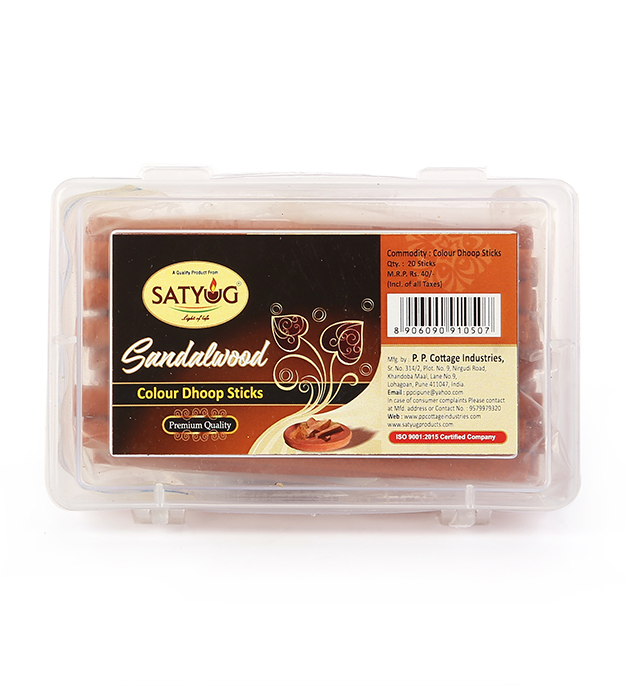 Sandalwood Colour Dhoop (20 Sticks) delivers a classic, soothing sandalwood fragrance.