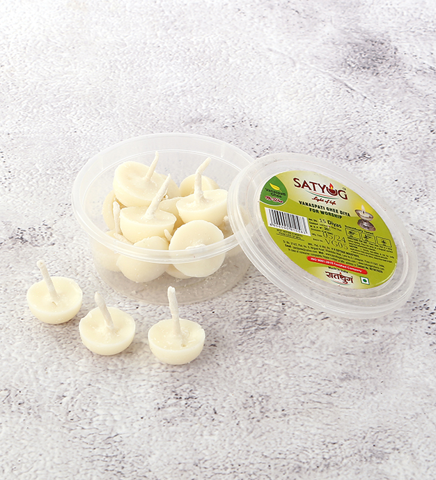 Illuminate your celebrations with PP Satyug Products' Vanaspati Ghee Diyas, crafted to add purity and a serene glow to every ritual and occasion. Made from premium Vanaspati Ghee, each diya is designed to burn bright and long, symbolizing positivity and prosperity.